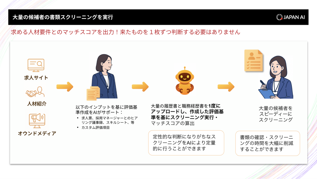 これらの相乗効果により、優秀な人材獲得確率の向上と採用プロセスの標準化を実現し、企業全体の採用力を強化します。