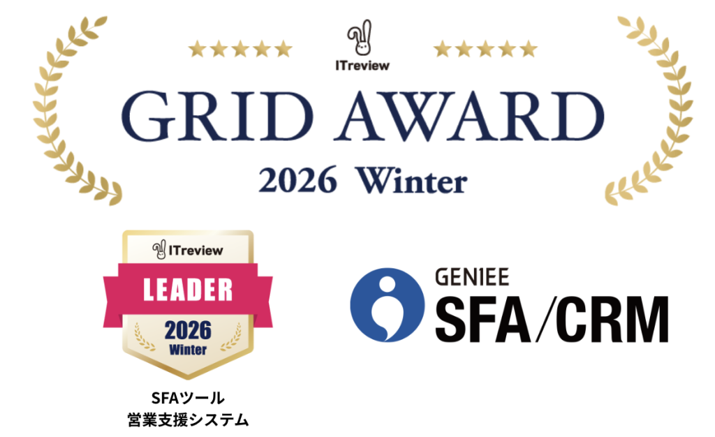 今回の「ITreview Grid Award 2026 Winter」は2025年12月までに掲載されたレビューの集計結果をもとに選定されています。「GENIEE SFA/CRM」を活用した営業進捗の可視化による社内での情報共有や会議の質の改善に関する高評価のコメントが多く寄せられました。